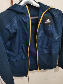 Giubbottino leggero Adidas TG 12 anni ma va bene anche a una s donna, vendo per inutilizzo, colore blu, profili gialli con tasche