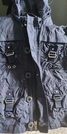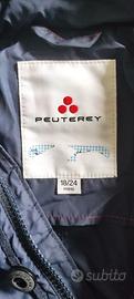 Elegante giubbottino a marchio Peuterey per neonati. Colore blu, con 4 tasche chiuse con fibie e bottoni sul fronte, cappuccio, chiusura con doppia cerniera + bottoni. Prodotto in Italia. Tessuto 100% poliestere. Età 18-24 mesi. Come nuovo, usato solo una volta