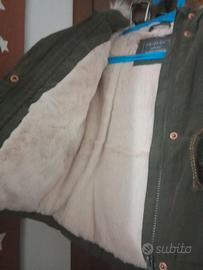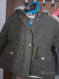 Bellissimo giubbotto per bambina, colore verde militare, taglia 24 mesi. - Cappuccio con pelliccia sintetica. - Fodera interna calda e morbida. - Coulisse in vita per regolare la vestibilità. - Tasche frontali con bottoni a pressione