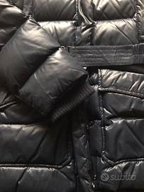 Dettagli: chiusura lampo con aggiunta di cinturina removibile, le tasche si chiudono con i bottoncini e il cappuccio, anch’esso rimovibile, ha il pelo di un colore blu ancroa piu brillante perfettamente morbido