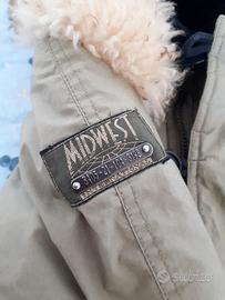 Giubbotto originale da bambino Midwest anni 80, taglia 5-6 anni colore verde oliva, molto caldo con cappuccio con interno tessuto peluche nero e bordatura pelliccia nocciola.