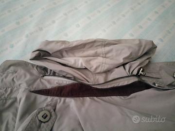 giacca leggera antivento, sportiva ed elegante allo stesso tempo, misura M da bambino, utilizzabile dai 5 anni in su per la presenza di elastici sia in vita che sul cappuccio.