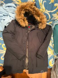 Vendo giubbotto parka blu con cappuccio con pelo usato poche volte come nuovo