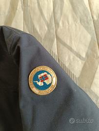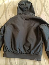 Giubbotto bomber invernale imbottito per bambino 10A/140 cm., originale Napapijri, colore blu scuro, con cappuccio, zip, due tasche applicate, logo su manica.