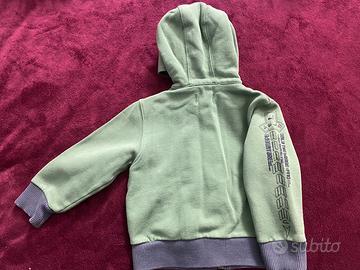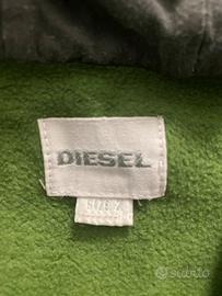 Giubbotto felpato con cappuccio, zip centrale e tasche laterali color verde oliva del marchio DIESEL, per bambini di 1-2 anni.