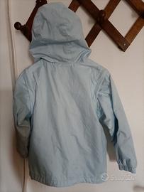 Giubbotto impermeabile leggero, unisex,Prénatal, tg. 3 anni, azzurro chiaro, con cappuccio e chiusura a zip perfettamente funzionante. Maniche staccabili, due tasche, foderato in cotone. Perfetto, come nuovo
