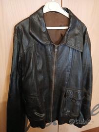 giubbotto vintage per giovane ragazzo in pelle, made in italy, anni 60/70 con fascia vita e polsini elastici in cotone, con tasche, un piccolo strappo alla fodera sul collo.10/13anni.