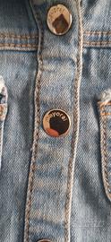 Giubbotto manica lunga per bambina. Chiusura con bottoni a pressione nella parte anteriore. Tessuto in jeans comodo e abbinabile per look di tutti i giorni.