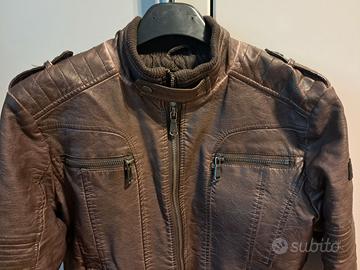 Giubbotto di pelle imbottito marca Yes Zee colore marrone per bambini di 10-12 anni (taglia L).