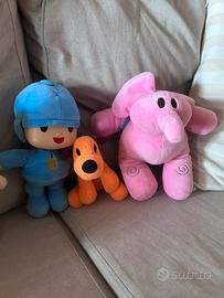 5 peluche morbidi tranne Pocoyo che ha solo la festa dura.