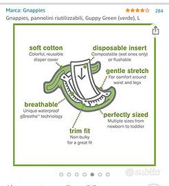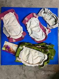 Vendo pannolini lavabili usati per la mia prima figlia solo per 9 mesi. Di due taglie, M ed L. Color verde e fucsia e due fantasia faglia newborn.