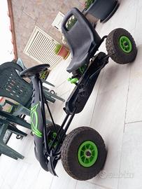 Go- kart per bambini ruote in gomma adatti su asfalto,ghiaia erba ,leva del cambio,freno a mano x ruote posteriori, catena inserita in alloggio sicuro,sellino regolabile sterzo facile da usare,telaio in lega d acciaio. Dimensioni 114Lx62lx62H