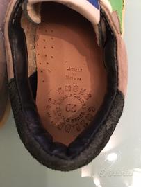 Scarpa made in Italy artigianale in pelle.Color grigio medio con stella verde.Plantare preformato,suola antiscivolo in gomma.Ottima qualita’della pelle.Buone condizioni