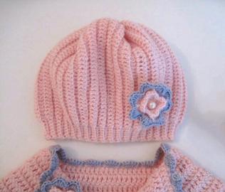 Completino neonata (Golfino, cappellino) 0-3 mesi, realizzato a mano all' uncinetto in pura lana merino baby di colore rosa con rifinitura colore grigio. Larghezza Golfino 22 cm. Lunghezza manica 17 cm. Altezza cappellino 15 cm. Per qualsiasi informazione non esitate di contattarmi.