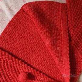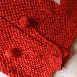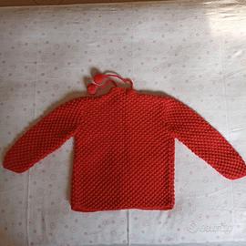 Golfino e berretto in lana da bimba (massimo un anno) fatto a mano, con pon pon color fragola.