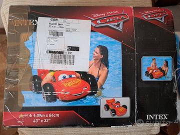 Gonfiabile a forma di macchina (Saetta McQueen); dimensioni: 84 x 109 x 41 cm. Realizzato in materiale vinile di alta qualità. Comprende top impugnatura saldata a tela cerata per maggiore resistenza.