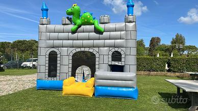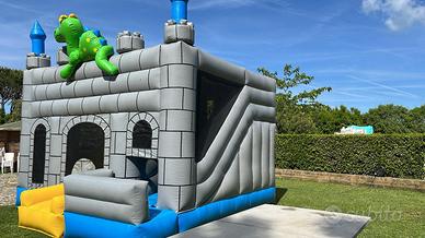 Uno splendido gioco gonfiabile che rappresenta un castello pronto a far giocare i bimbi grazie alla vastità di giochi presenti al suo interno. Aldilà dell’indubbia bellezza estetica, questa giostra gonfiabile è tra le più complete, per mettere d’accordo i gusti di tutti e riuscire a far diventare la festa memorabile. La predominanza del grigio, con l’accompagnamento dell’azzurro e l’immancabile verde raffigurante il famoso draghetto, fanno da cornice ad un gioco irresistibile.