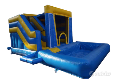 Gonfiabile di particolare effetto, ideale per feste all’aperto o in giardino, i bambini possono scivolare e tuffarsi, sfruttando l’ampia piscina sottostante! Tutto colorato esclusivamente di azzurro.