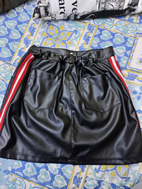 Gonna di pelle con dettagli sui fianchi rossi e bianchi