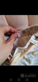 Gonnellina estiva fiorata con cintura (non è fissa, si può tranquillamente togliere) e mutanda copri pannolone con retro a balze in pizzo. Marca Idexe, taglia 3 mesi. Usato pochissimo, nessun difetto.