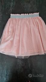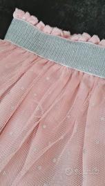 Gonna rosa con pois argentati, marca Newness, taglia 5 anni, 110 cm. Indossata una sola volta, praticamente nuova.