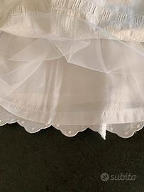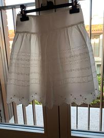 Gonna bianca in cotone pregiato, per bambina di 8/9/10/11 anni. Brand: Simonetta. Made in Italy. All’interno 2 strati: uno in cotone leggero per ovviare alla trasparenza, l’altro in tulle. Condizioni perfette. Taglia 9 (146). Altezza cm 45, larghezza cintura cm 31.