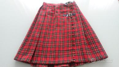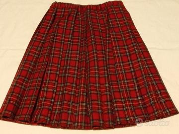 Gonna tartan rossa in tessuto di lana.