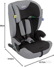 Modalità rialzo con cinture integrate in senso di marcia da 76 a 105 cm (da 15 mesi a circa 4 anni); modalità rialzo con schienale alto in senso di marcia da 100 a 150 cm (da 3,5 a 12 anni circa)