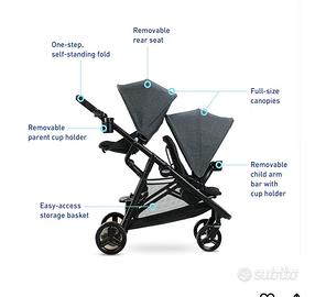 Ho messo le foto di amazon pedche ho comprato da li negli stati unti. Non lo trovi questo passeggino qui. Ma è perfetto per le strade strette e la cittá loro erano 2.5 e 6 mesi e lho usato fino 4 anni e 2 anni. Ho fatto i viaggi ed è sempre in buon condizioni. Ho pagato 300.
