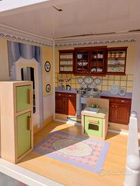 Grande casa delle bambole KidKraft Savannah in legno con accessori Vendo bellissima casa delle bambole in legno originale KidKraft modello Savannah, di grandi dimensioni e completamente arredata. La casa è sviluppata su 4 livelli con diverse stanze (cucina, soggiorno, bagno e camere da letto), ricche di dettagli realistici e accessori inclusi come mobili, tavolo, sedie, letto e altri elementi. Caratteristiche: Modello: KidKraft Savannah Dollhouse (65023) Dimensioni: altezza 130 cm, larghezza 83 cm, profondità 34 cm Struttura solida in legno di qualità 4 piani con scale interne Design curato e colorato Adatta a bambole tipo Barbie (fino a circa 30 cm) Completa di vari arredi inclusi In ottime condizioni con normali segni d’uso. Perfetta per stimolare la fantasia dei bambini e per ore di gioco creativo. Pensata per l’uso da parte di bambini, la struttura resistente della casa è progettata per resistere nel tempo all’usura del gioco.
