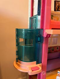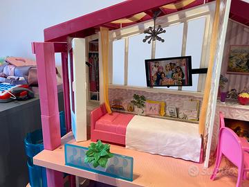 Casa di Barbie con tanti accessori, compresa la macchina di Barbie.