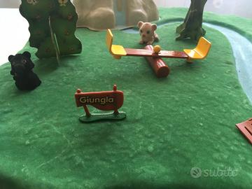 Plastico della Grande Giungla, originale della GIG, completo di 3 Cuccioli cerca Amici e dei tanti accessori visibili nelle foto, come il ponte che unisce le due rive del ruscello, le giostrine che girano veramente, l'altalena che sale e scende, la montagna, la caverna, gli alberi e lo steccato con la scritta Giungla.