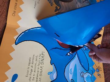 Grande Libro Pop up illustrato per bambini, 44 x 34 cm, un po' da sistemare squalo, rana e granchio. Molto simpatico!