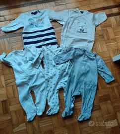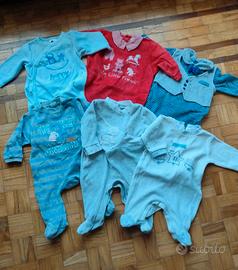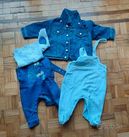 Grande lotto (29 pezzi) bimbo autunno inverno, taglia 3-6 mesi. Qualcosa piú leggero, qualcosa piú pesante. Comprende 6 tute in ciniglia, una giacca di jeans, 2 salopette di cui una in ciniglia, 4 pigiami (3 leggeri un po'piú usati), due tutine in cotone, due magliette a maniche lunghe, 3 pantaloni, un cardigan, un paio di calze, 2 felpe, 2 cuffie (una leggera, una in ciniglia), 3 body. Marche varie: idexè, chicco, grain de ble, magnolia, Kiabi, Prenatal, Benetton, Primigi, Disney, fagottino, iobio. In un paio di tutine di ciniglia ci sono dei piccoli difetti su due bottoni.