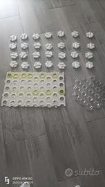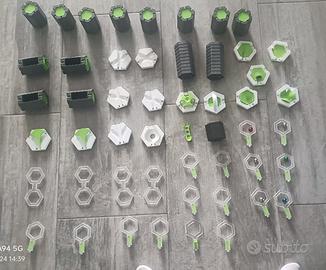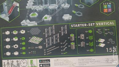 Sistema di costruzioni per piste di biglie basato sulla forza di gravità.