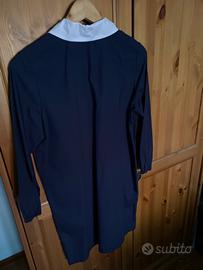 Vendo grembiule di cotone di colore blu scuro con colletto bianco per attività scuola elementare, altezza cm. 140. Disponibile per spedizione