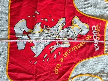 Vendesi simpatico grembiule da cucina per bambini con grafica originale Disney. Protagonista un divertente Paperino pasticcere con la scritta "Io pasticcio e tu?".
