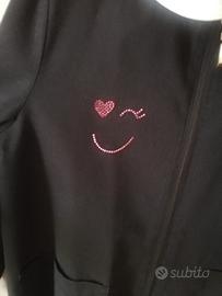 Grembiule nero Siggi, taglia 6 anni, cm 116, con cerniera e dettaglio smile con brillantini rosa