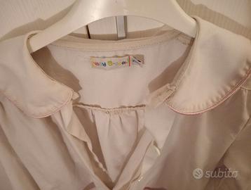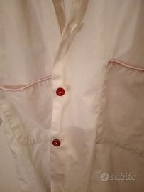 Grembiule bianco da bambina, bordi colletto e tasche rosa. Sostituiti due bottoni con nuovi rossi
