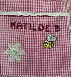 Si personalizzano con toppe termoadesive rifinite a mano e nome ricamato con la tecnica del punto croce grembiuli per materna e scuole elementari. Per info inviare un messaggio al 3480038718. Ricordo che é un hobby, quindi se interessati ordinare in anticipo. Grazie❤️