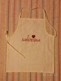 Grembiulino "oggi cucino io" lavorato a punto croce tg 4 anni Euro 8,00 Grembiulino "I love Sardegna" tg 4 anni Euro 5,00 SET TRE GREMBIULINI Euro 15,00