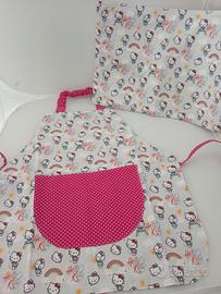 Grembiulino da cucina con tovaglietta hello kitty. Età 2-6anni Handmade