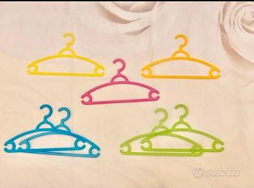 N. 7 appendiabiti colorati in plastica, per bambini.