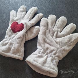 Guanti bambina in pile bianchi con cuore rosso.