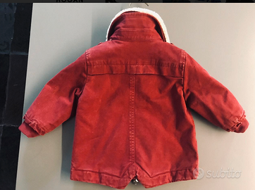 SUPERGLAM ed ESCLUSIVO PARKA, chiusura tramite bottoni e cerniera brandizzati, logo GG1921 stampato su petto e spalla, colletto in pelliccia ecologica staccabile tramite bottoni logati. Articolo originale collezione GUCCI GG1921 BIMBO. Veste taglia 3/6mesi.
