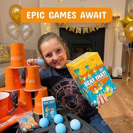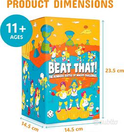 Gutter Games Beat That Game - La folle battaglia delle sfide pazze - Giochi per famiglie per bambini e adulti - Gioco di carte e da tavolo, incoraggia il divertimento, la creatività e i momenti memorabili nelle feste Un gameplay coinvolgente: vivi l'esperienza del party game più stravagante del mondo; rimbalza, capovolgi, impila, salta e rotola per raggiungere la vittoria; incoraggia le risate e l'interazione per un divertimento indimenticabile in famiglia. Adatto a tutte le età: ideato per giochi in famiglia che possono essere apprezzati da tutti; perfetto per adulti e bambini; stimola la creatività e favorisce la socializzazione durante cene e riunioni. Sfide entusiasmanti: divertitevi con giochi per famiglie pensati per gli adulti, che reinterpretano in chiave moderna i tradizionali giochi di carte; un intrattenimento stimolante che coinvolge e diverte tutti. Momenti memorabili: crea ricordi indelebili con amici e familiari; i giochi di alta qualità sono adatti a tutti i livelli di abilità, rendendoli un regalo fantastico per compleanni, festività o eventi speciali. Opzioni di gioco adattabili: ideale sia per ambienti interni che esterni; mettete alla prova le vostre abilità, la coordinazione e la prontezza di riflessi con una serie di divertenti sfide; garantisce divertimento senza fine per le serate di gioco in famiglia.
