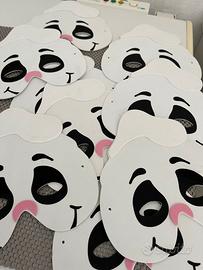 mascherine in gomma Eva (4 pipistrelli, 3 zucche, 9 fantasmini). Le mascherine hanno i fori, ma non gli elastici perché utilizzate come decorazioni. Decorazioni zucca e fantasma da appendere. Cappello Halloween in poliestere. Gli elementi del kit non si vendono separatamente.