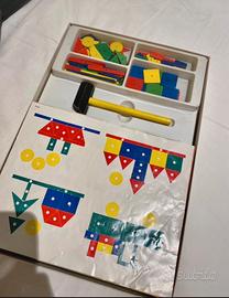 Gioco del martelletto anni 80 Hammer spiel bricoleur Tesserine e martello in legno, usato, Potrebbero mancare dei chiodini