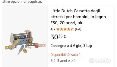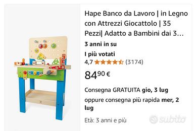 Il banco è tuttora in vendita identico su Amazon a 84 euro, la cassettina (hanno cambiato solo i colori) a 30 euro.