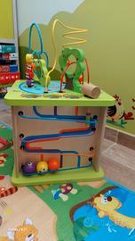 Hape Cubo Gioco Multiattivita' con animali, forme, labirinti.... in Legno. Condizioni buone. Completo di accessori originali Scatola originale.